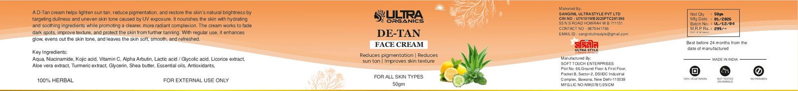 A D-Tan cream helps lighten sun tan, reduce pigmentation, and restore the skin’s natural brightness by targeting dullness and uneven skin tone caused by UV exposure. It nourishes the skin with hydrating and soothing ingredients while promoting a clearer, more radiant complexion. The cream works to fade dark spots, improve texture, and protect the skin from further tanning. With regular use, it enhances glow, evens out the skin tone, and leaves the skin soft, smooth, and refreshed.Made in India