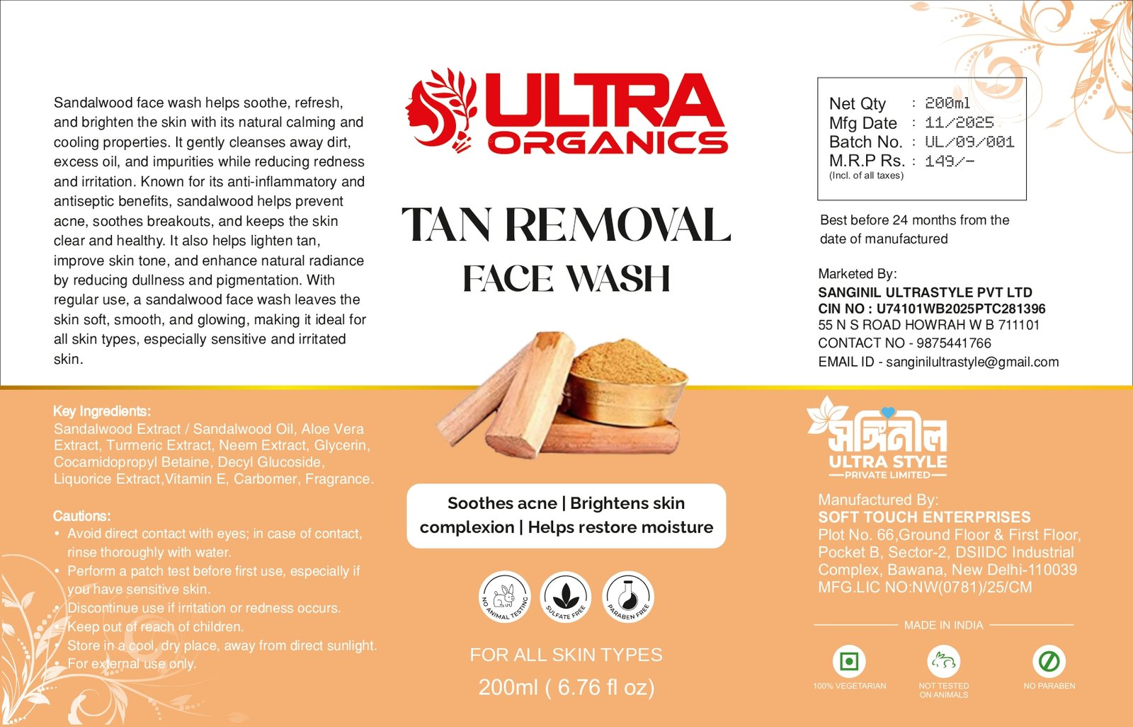 TAN REMOVAL FACE WASH (Sandalwood face wash)